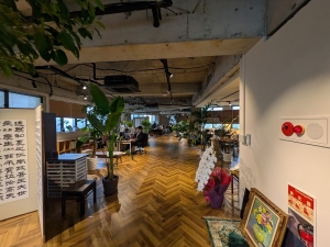 オーナーの私物の骨董品や絵画をディスプレイしながら、