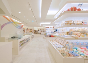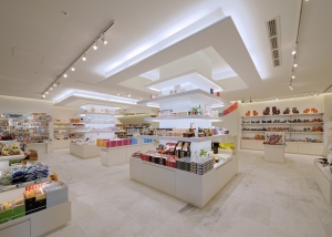 床、壁、天井とも商品が際立つよう、全て白色で統一しています。