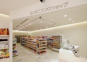 また、店舗中央にある2本の躯体柱をアイキャッチになる重要部分と捉え、モザイクタイルと間接照明で、店内で最も目立つ主力商品を陳列する什器として設計しています。
